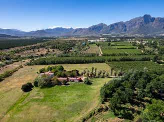 Spacious family living in a countryside setting with breath-taking views, but just a short distance from Franschhoek Village. The heart of this home is the huge open plan double volume light filled kitchen/ breakfast/living room with feature fireplace and patio doors flowing onto a covered stoep.