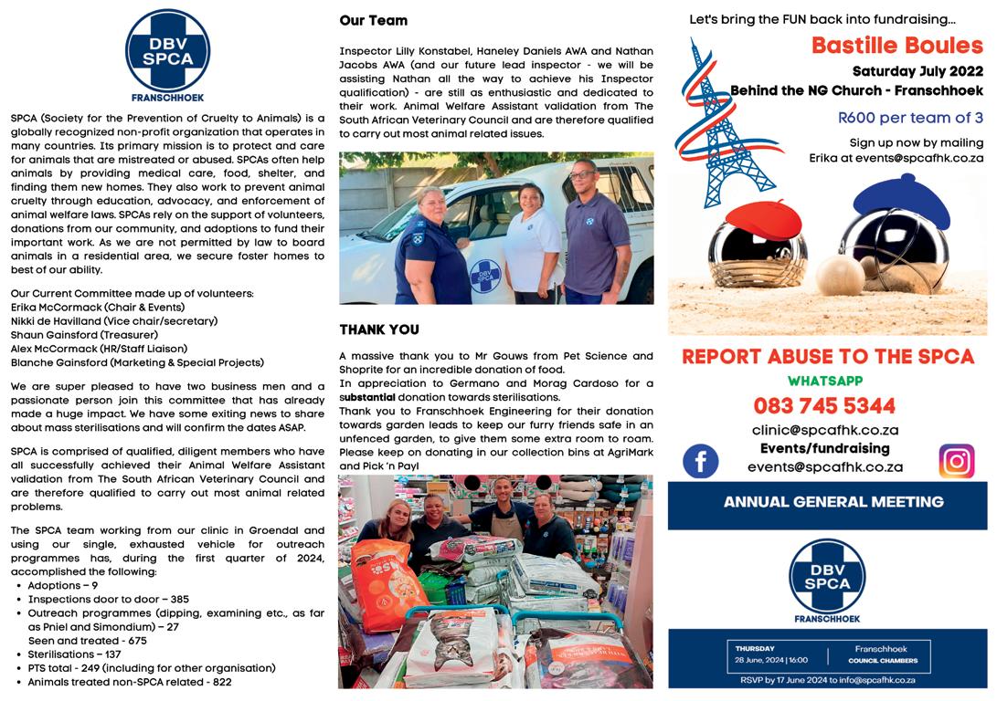 On 17 April 2024, the Franschhoek Community Police Forum (CPF) facilitated two training projects to benefit the community. For Chairman Archie Jefthas, Vice-Chairman Trevor Jafthas, Secretary Hellene Fischer, Victim Empowerment Officer Sgt Muriel Sitzer, Project Coordinators Sergio Petersen and Henrietta du Preez, and Victim Support Co-ordinator Juliana Grobbelaar it was the culmination of a lot of hard work and effort. The two training projects dealt with GBVF (Gender Based Violence) and Femicide/Domestic Violence, respectively, and were presented in collaboration with Mosaic.