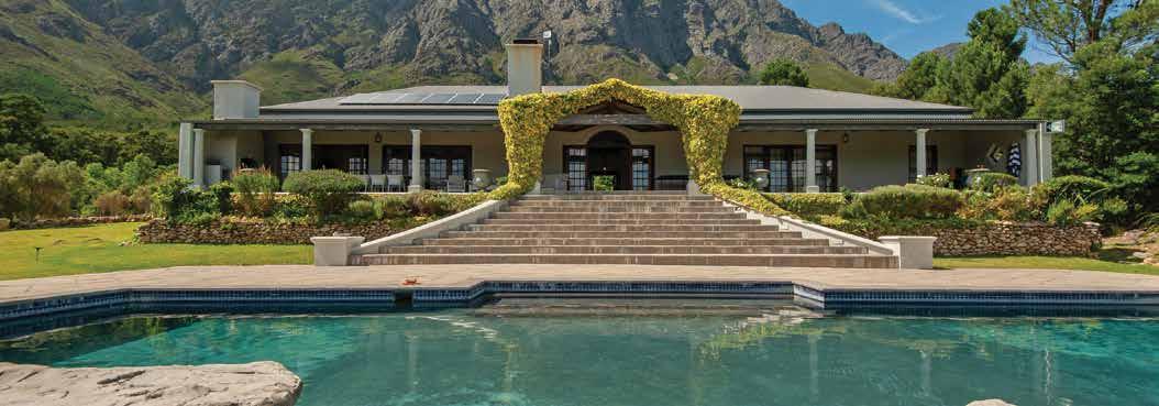 Boasting some of the finest views on the slopes of the Fransche Hoek Estate. A charming front garden and entrance stoep invites you in to spacious open-plan living areas incorporating two lounges, a showcase kitchen and openplan dining all leading out to the viewing terrace. Also offers a well-equipped scullery and separate laundry with direct access to the drying yard and double garage.