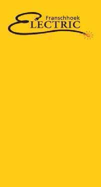 18 | November 2022 9 New Street, Paarl, 7646 T: 021 872 1346 | F: 021 872 6625 E: sales@cathmar.co.za | Web: www.cathmar.co.za Guaranteed Affordable Prices on Sales & Service of: SMART HD & UHD LED Tvs Home Theatre Systems • Multiroom Audio DSTV Satellite & Terrestrial Installations Email Ons gebruik ons gevorderde lugopmeting stelsel om n kwaliteit besproeiingsontwerp en -stelsel te lewer. We use our advanced aerial survey equipment to supply a high quality irrigation design and system. De Villiers Visser Besproeiing / Irrigation FLOOR MASTER STELLENBOSCH Wooden floor repairs, sanding & polishing. Since 1992. Also solid wood & laminated flooring installations. Call Tim for a free quotation. Cell: 082 442 5244 Email: floormasterstell@gmail.com Tel: 021 - 887 6707 www.floormasterstellenbosch.co.za Our service wood floor you! DOMESTIC OR COMMERCIAL CLEANING Daily, Weekly, Monthly or Once-off and we can do WINDOW CLEANING, IRONING, CARPET & UPHOLSTERY CLEANING Vicky Cell: 082 975 2494 Email: vjmuscroft@iafrica.com cell 083 321 3442 tel/fax: 021 876 2510 Sue Norman Sue’s Gardens Landscaping and maintenance of gardens, all sizes! Mulching services available. PLEASE NOTE OUR NEW EMAIL suenorman50@outlook.com C: 071 990 9219 • C: 082 390 8191 ocwcarpentry@gmail.com Old Simondium Winery, R45 PO Box 5, Groot Drakenstein, 7680 Restoration | Carpentry Joinery | Built-in Cupboards OCW RESTORATION & PROJECT MANAGEMENT 074 313 7829 +27 (0)21 876 3640 Unit A, Fabriek Nationale No 1, 9 Fabriek street, Franschhoek 7690 herman@franschhoekelectric.co.za www.franschhoekelectric.co.za WE MANAGE ALL RELATED HOMEOWNER SERVICES WITHIN FRANSCHHOEK, BOLAND, WINELANDS AND SURROUNDS Copyright: All rights reserved, reproduction in whole or part prohibited. Views expressed are not necessarily those of the editor. Publication of editorial or advertising matter does not imply endorsement o r warranty in respect of goods or services therin described. Local R350; International R800 FRANSCHHOEK STORAGE For shor t and long term stor age solutions. We of fer lockable bays, container s and SAFE. SECURE. AFFORDABLE. PACKAGING TRAILER HIRE 6 Fabriek Str eet 0218762174 0823206523 082 391 5327