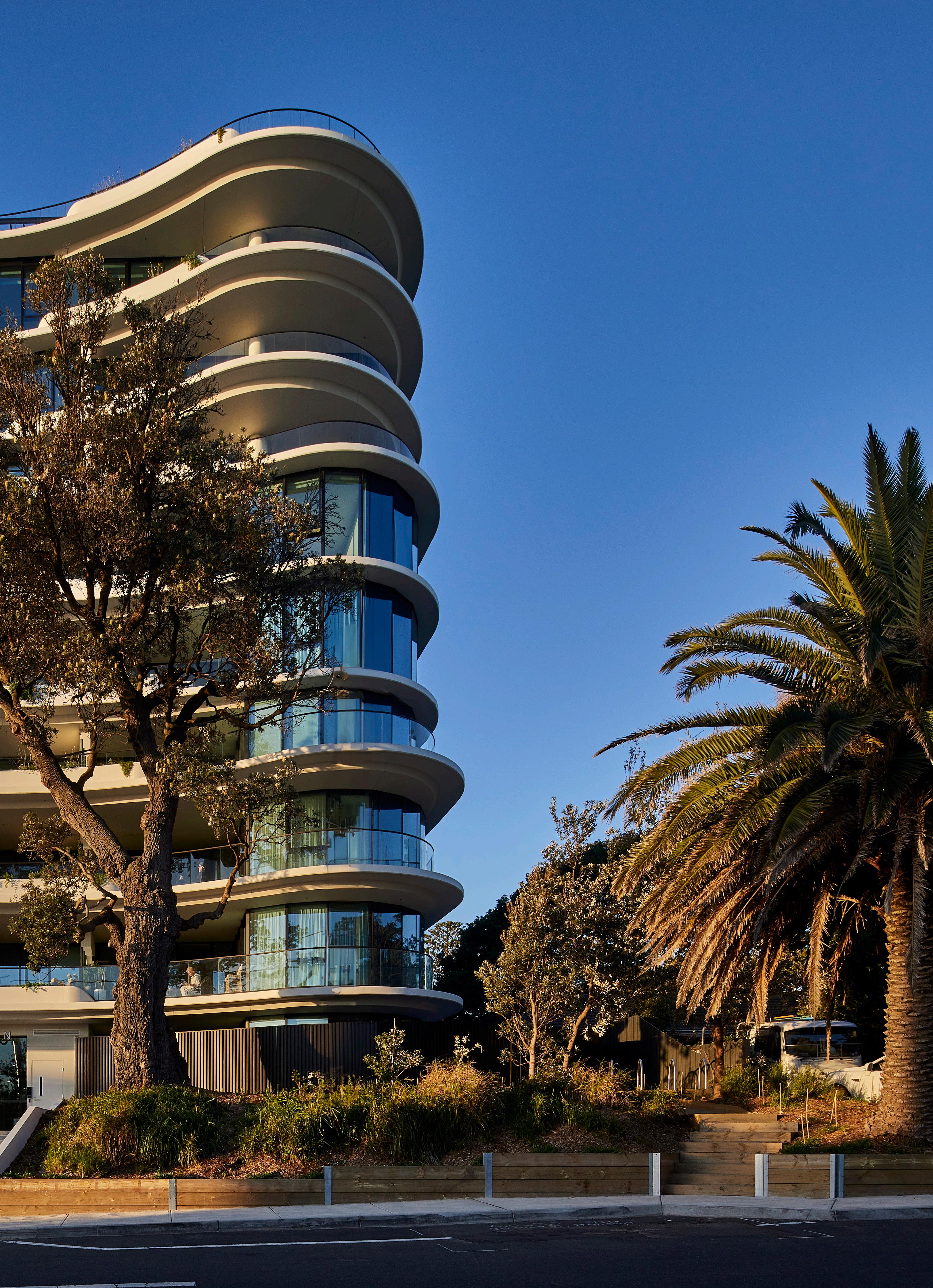To capture the endless summer, living spaces need to reflect a coastal ethos. And that calls for biophilic design. Fluid geometry and a playful approach to the built environment reflect the building’s setting and reinforce the reason people choose to live here. The horizontal planes of the building extend beyond its core, echoing the long and undulating lines of the nearby beach, boardwalk and pier, and riffing off the sharply delineated horizon line that defines the sparkling bay.