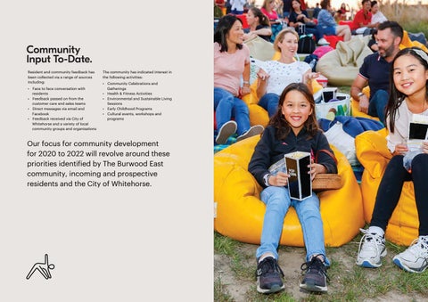 Community Input To-Date. Resident and community feedback has been collected via a range of sources including: • Face to face conversation with residents • Feedback passed on from the customer care and sales teams • Direct messages via email and Facebook • Feedback received via City of Whitehorse and a variety of local community groups and organisations