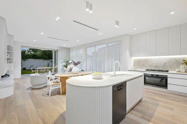 Modern two-level townhouse featuring four bedrooms, two ensuites, central bathroom, powder room and separate laundry. Specifications include stainless steel Miele appliances, stone benchtops and timber flooring to general areas. Complemented by west-facing private open space, a single car garage and additional off-street parking. Does not benefit from access to any communal amenity.