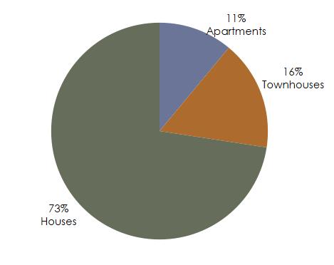73% of dwellings in Yarraville are detached houses. Recent supply data indicates a densification of the suburb with an increased representation from townhouses.