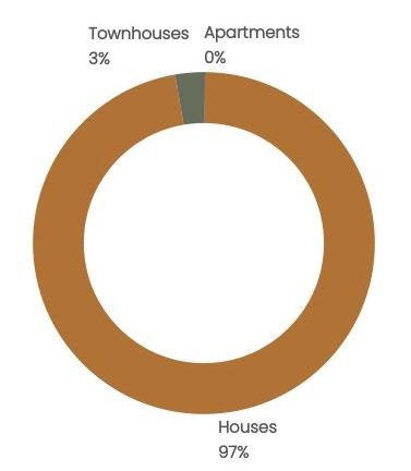 Clyde North contains a high proportion of detached housing (97%) with only a limited number of townhouses (3%) and no representation of apartment stock (as at the 2021 Census).