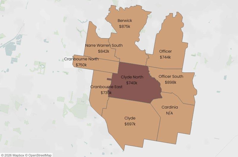 Clyde North & Berwick 2025 median house price.