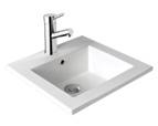 850mm high laminate square edge benchtop from builder’s predetermined colour boards.