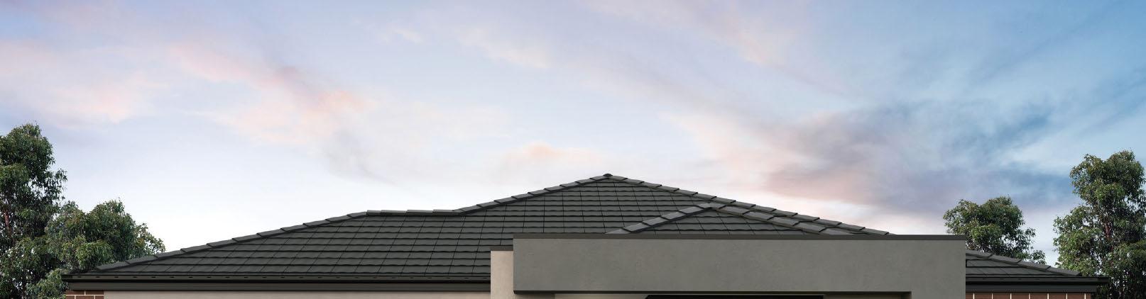 Dark colour on roof tiles from builder’s predetermined colour boards to meet 7 star energy rating.