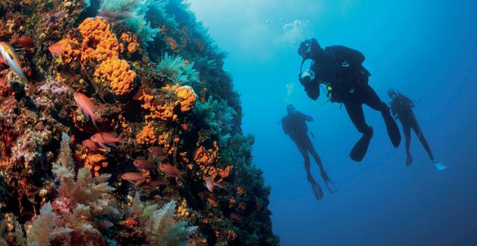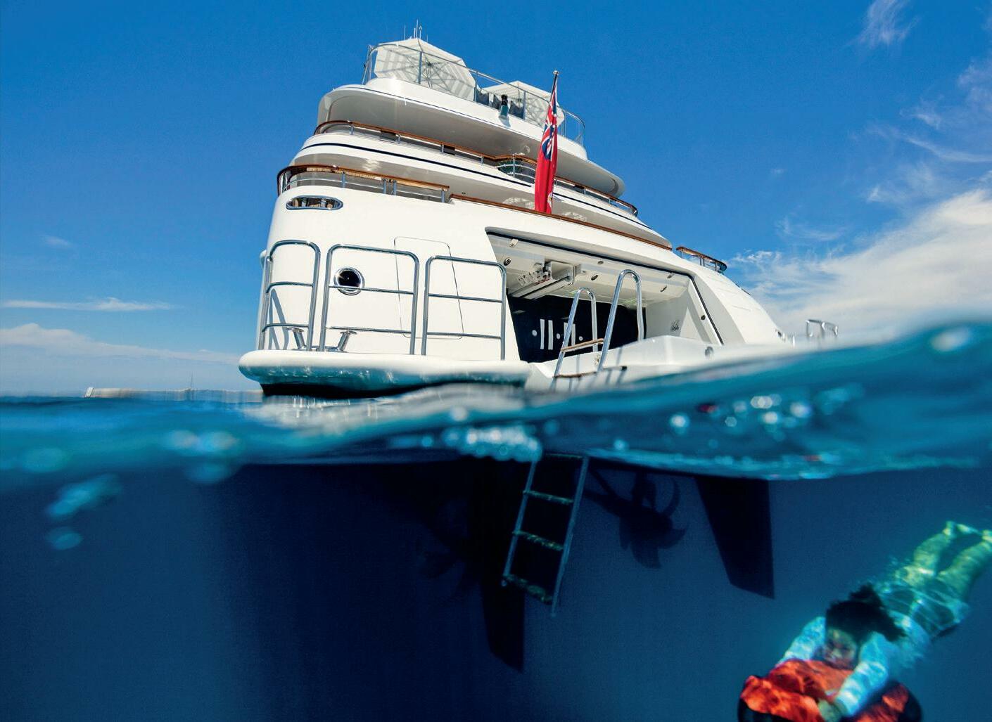 And it doesn’t need to end there. Your workout can also extend on land. Your crew can take you by tender to the best running and biking trails on nearby islands and coasts, often rewarded with fantastic views. Many yachts including 52M/172’ BIG EAGLE (for charter), carry bicycles for an active day of onshore exploration. Alternatively, many guests today choose to explore beneath the surface and make the most of the stunning dive destinations only accessible to yachts. Learn more about exploring underwater and on land on page 34.