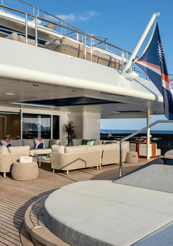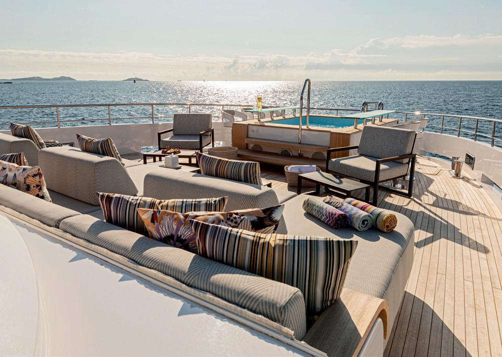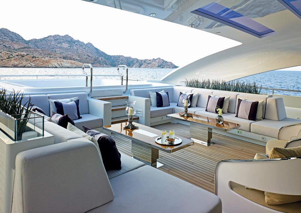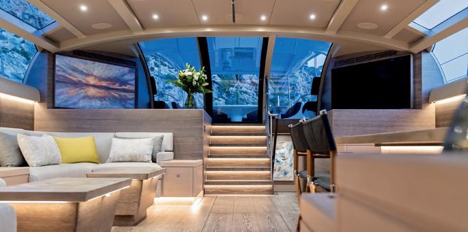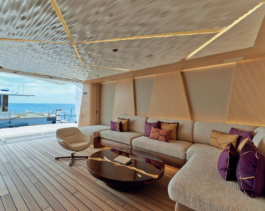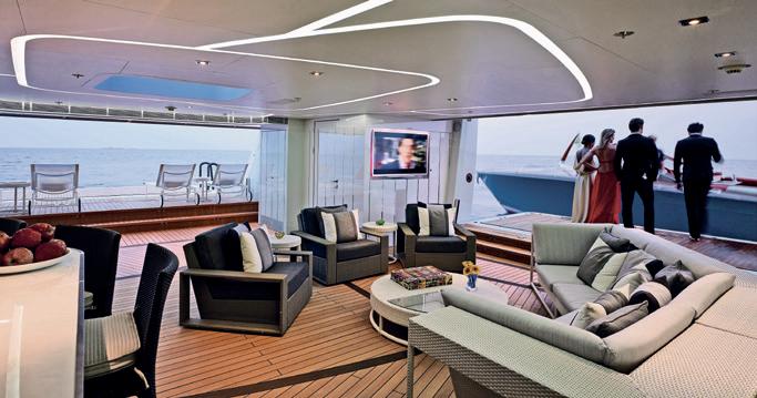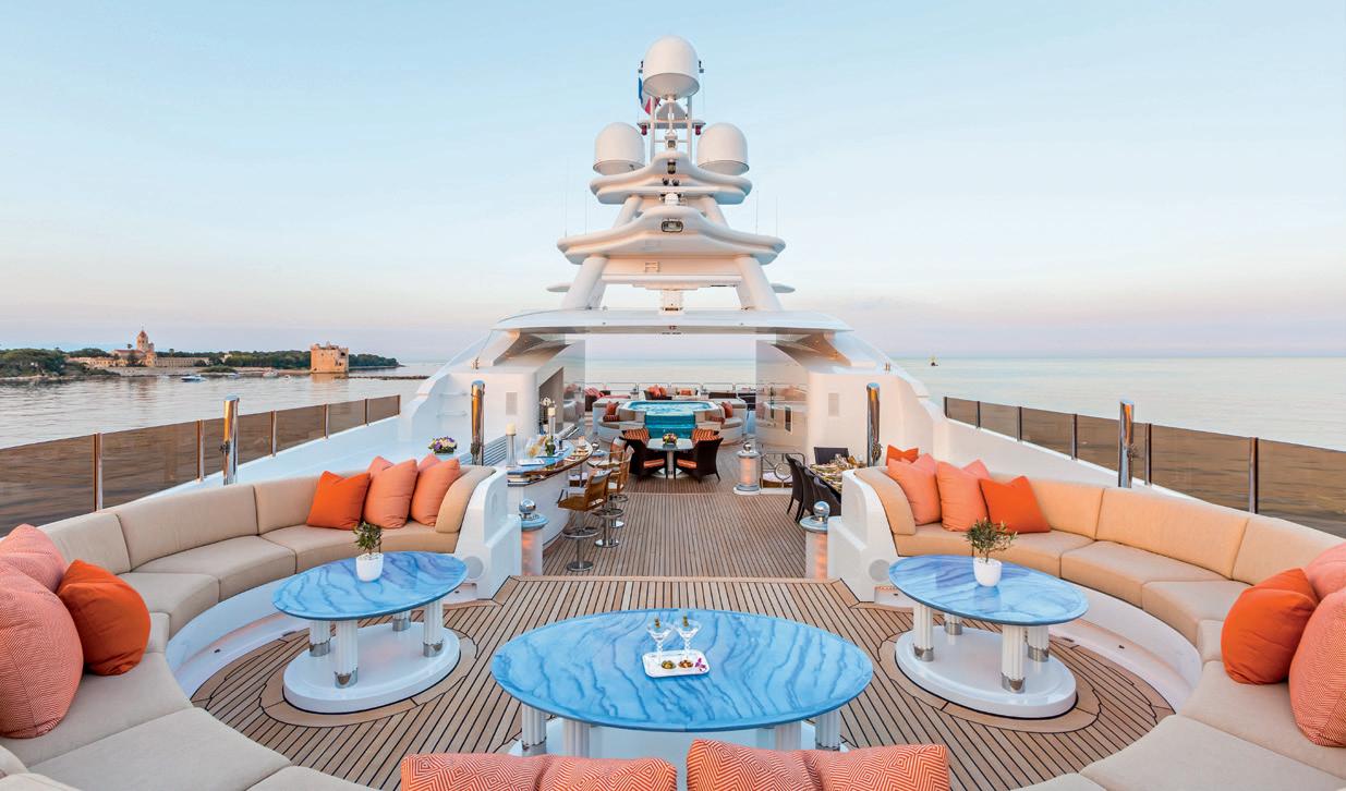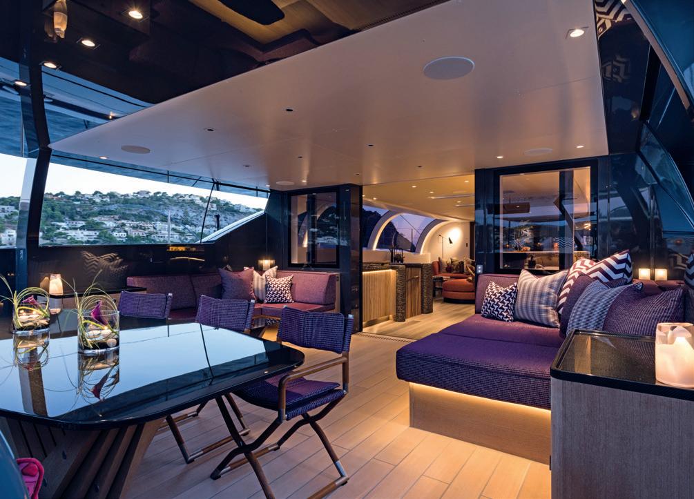 On board certain yachts, transforming a space from a daytime relaxation deck into a ready-to-rock party venue can even happen at the touch of a button. WHEELS’ main salon and sundeck can be