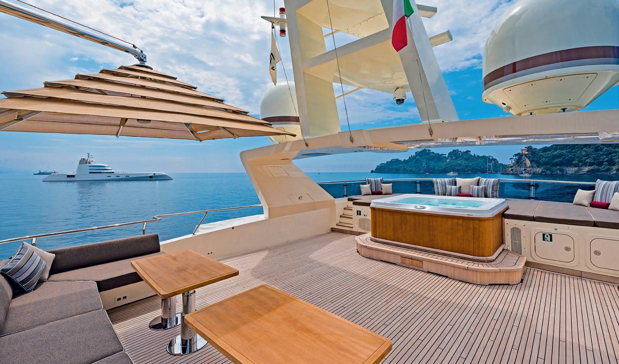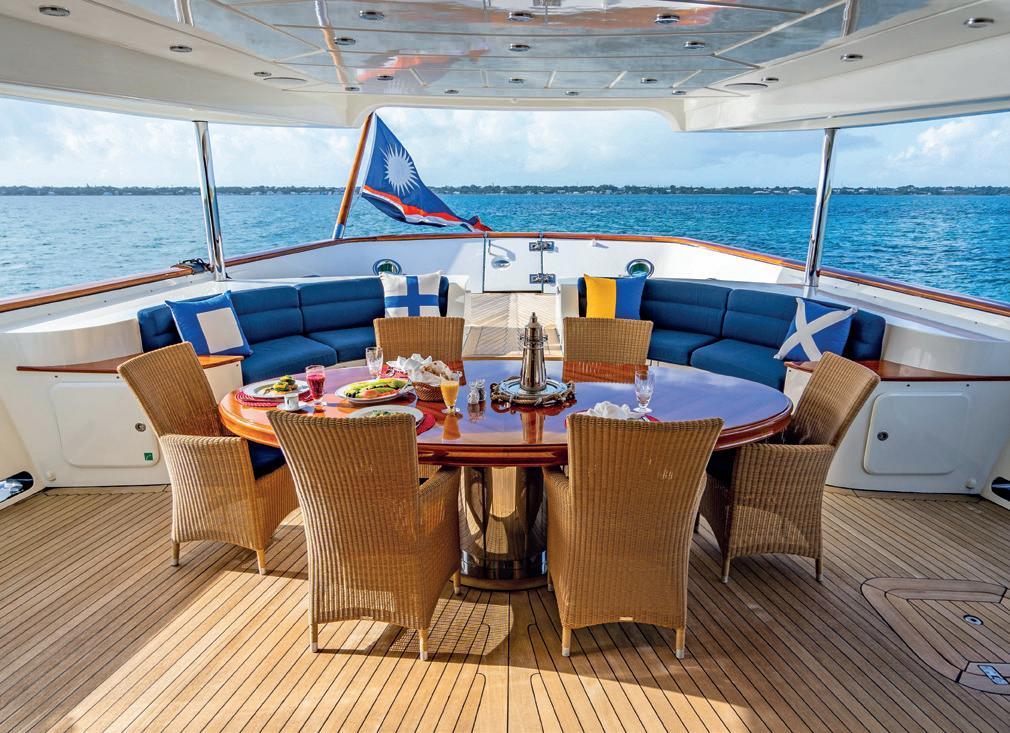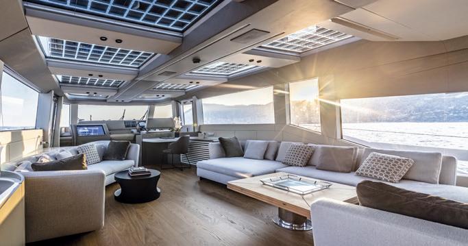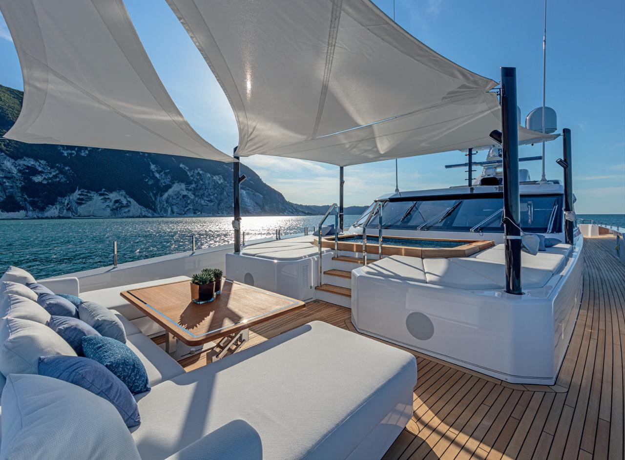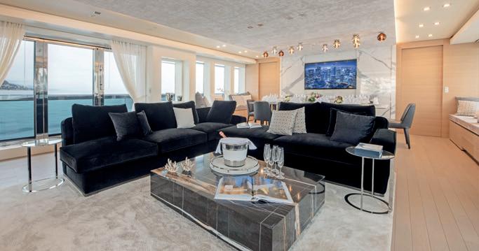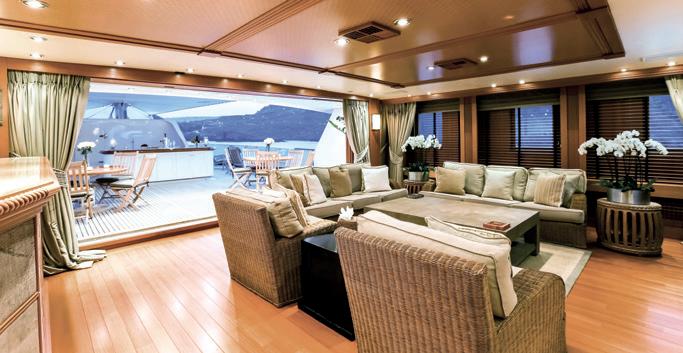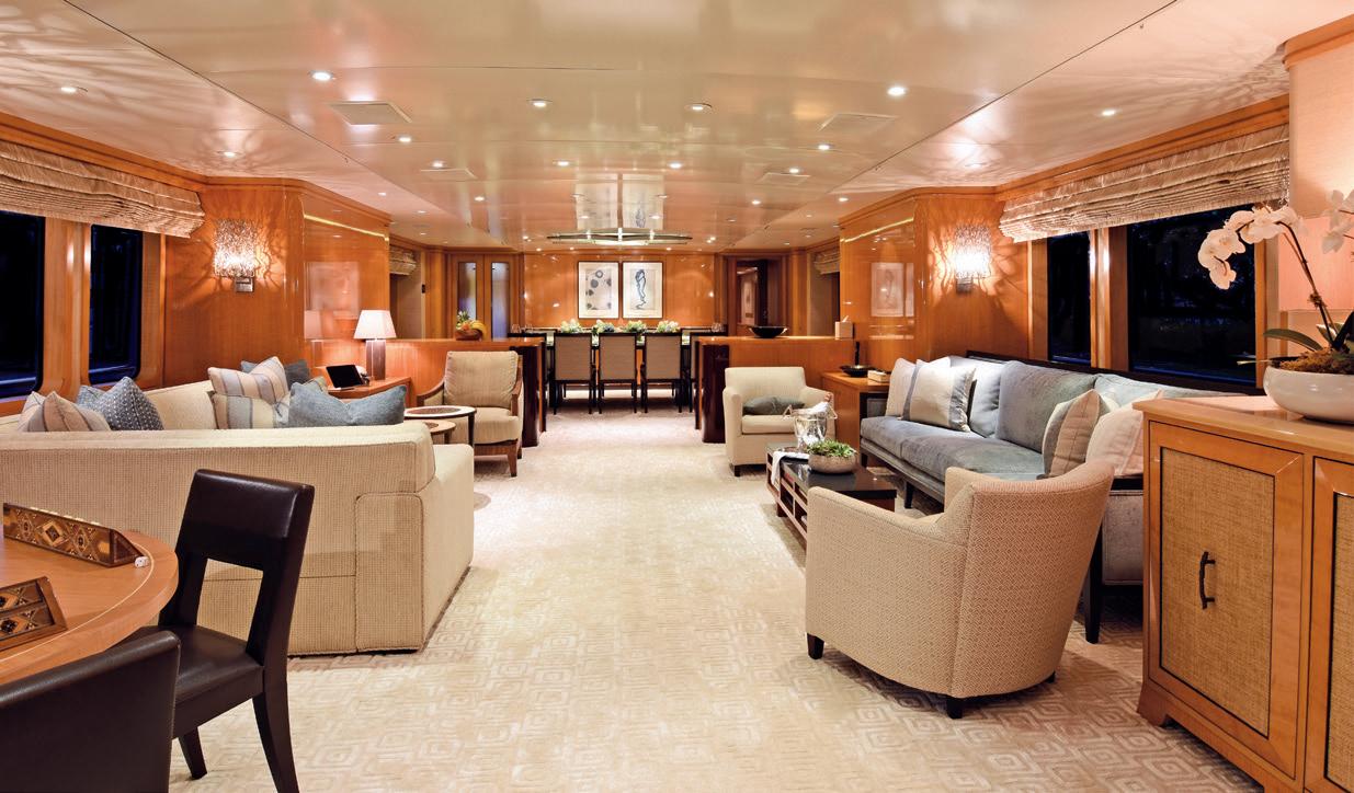 On board certain yachts, transforming a space from a daytime relaxation deck into a ready-to-rock party venue can even happen at the touch of a button. WHEELS’ main salon and sundeck can be