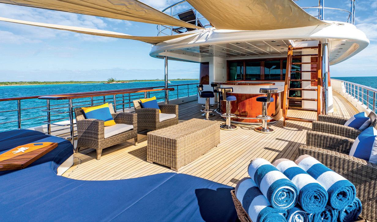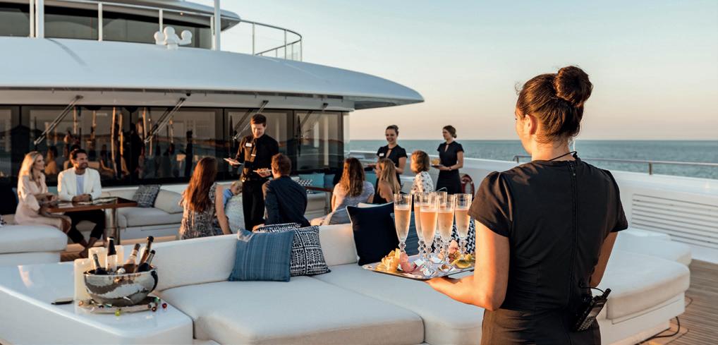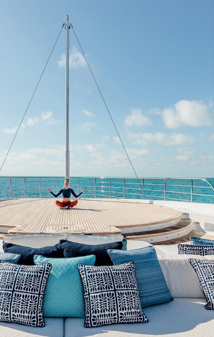 As well as masseuses and beauticians, many of today’s multi-talented crews also offer qualified yoga and Pilates instructors, as well as personal trainers and water sports instructors (see page 24 if you are looking for the ultimate active experience on board). Guests on board often start their day with a yoga session out on the sundeck led by a professional instructor.