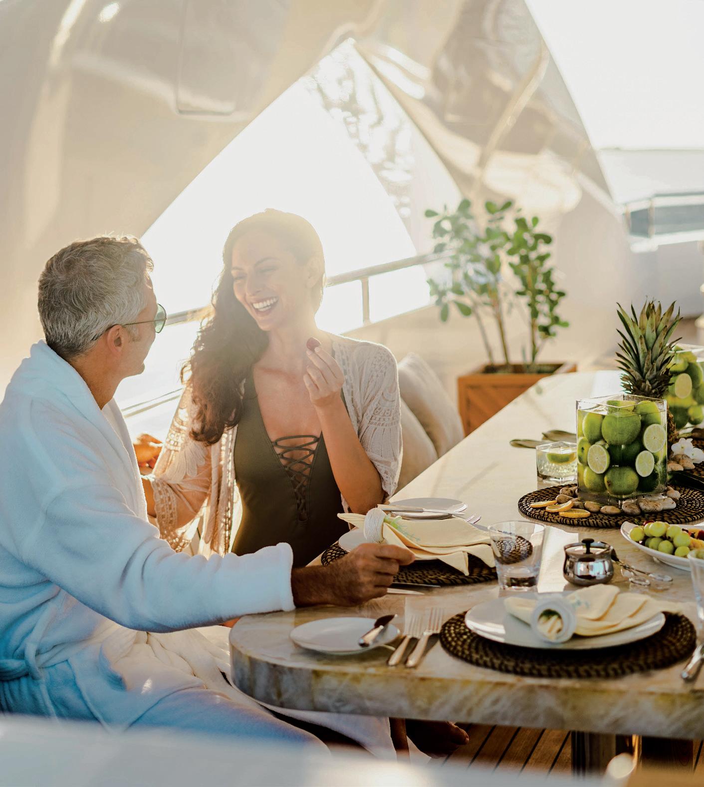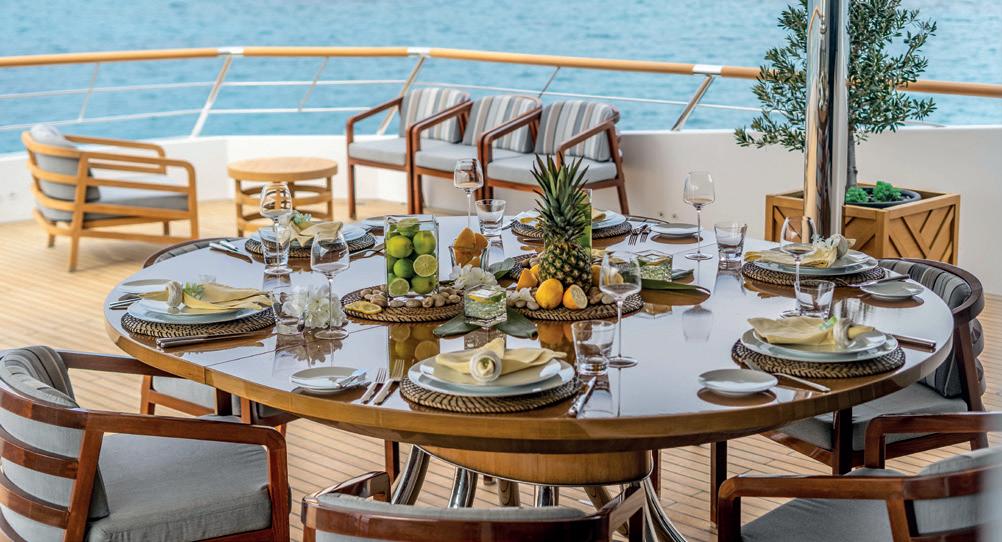 When it comes to dining on board, as you can read on page 22, anything is possible — including any dietary plan. “It’s absolutely possible for us to arrange a detox charter,” says Fraser Charter Broker Frances Edgeworth. “Your chef can prepare a special menu based on the health and nutritional goals you want to achieve, if necessary working with a dietician or nutritionist that we will arrange to be on board with you.” From plant-based to paleo, low-fat to low-carb and anything in between, experienced yacht chefs are ready for anything.