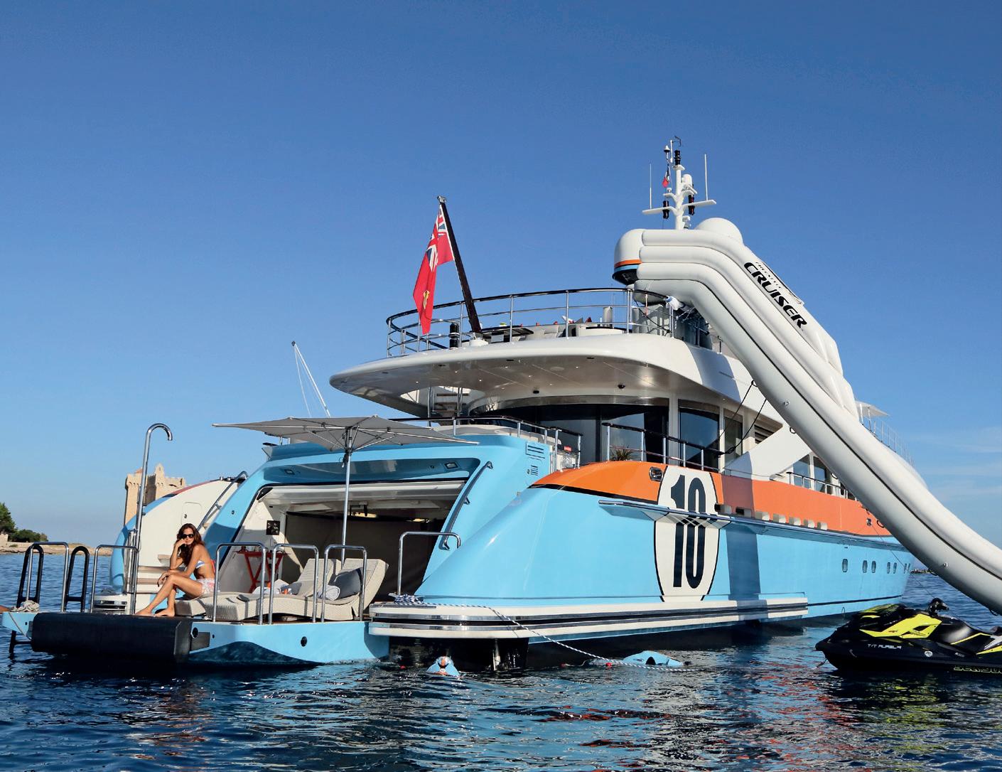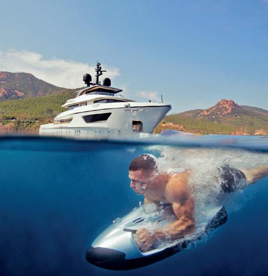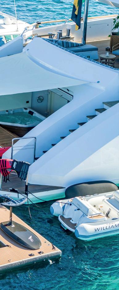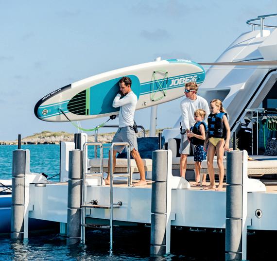 or paddle board. Or take on a new challenge — this is the perfect opportunity to try kitesurfing or Flyboarding, have a go at e-foiling or learn how to sail on a catamaran, with top instructors at your side. And for the young (and young at heart), the yacht and the ocean make for the ultimate playground. The crew can set up an inflatable slide, climbing wall, trampoline and more for all-day fun.