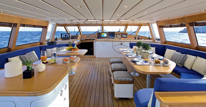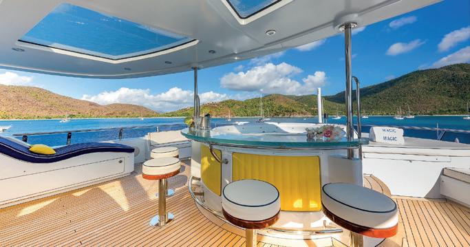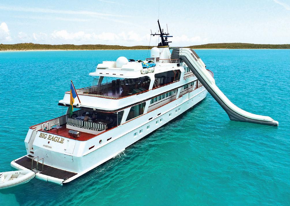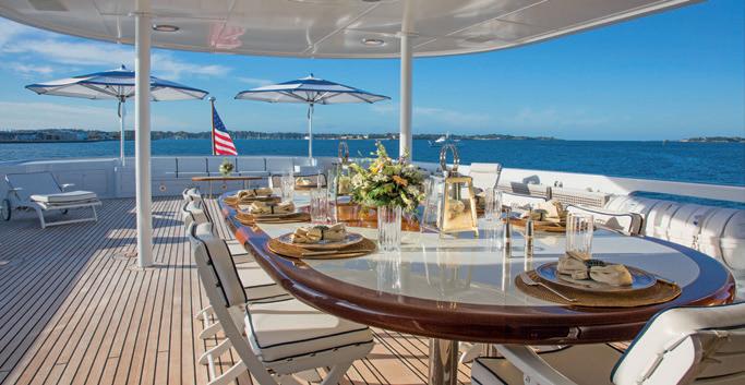 transformed into a disco area with professional disco lights, smoke machine and DJ-grade sound system. BIG EAGLE has a dedicated party deck with covered dining for up to 50 guests and a large bar (the space can be fully enclosed and heated), as well as an onboard sports bar with full bar and wine chiller.