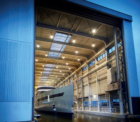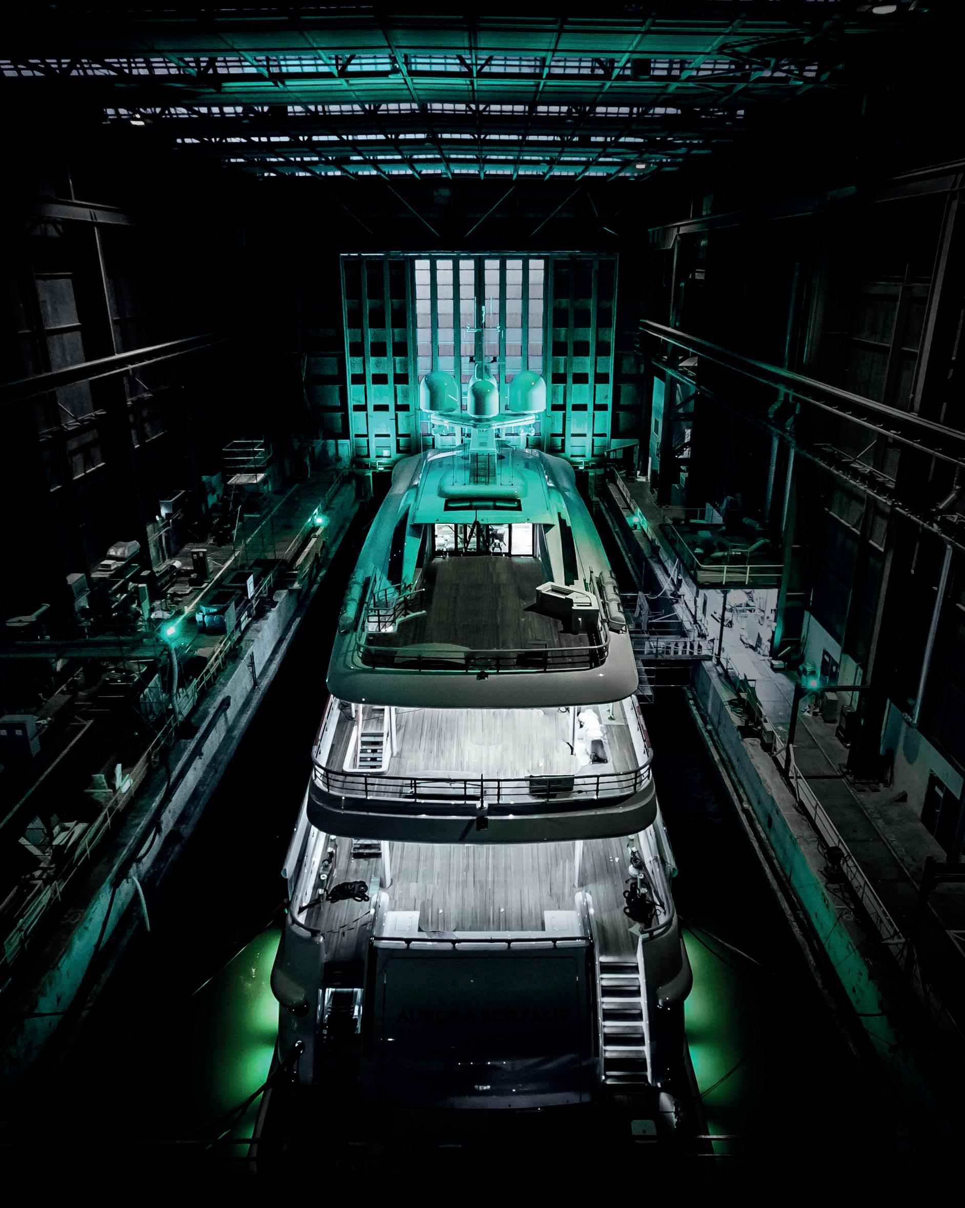Work doesn’t finish when night falls in Oss, The Netherlands. Home to the Heesen shipyard, spotlights illuminate aluminium welders as they artfully fuse together a smooth hull. To obtain maximum strength and rigidity, Heesen uses aluminium that is more than three times as thick as that used on the body of a a jumbo jet. For materials that robust, the artisanal skill required to mould them into submission is not the reserve of the small and dainty.