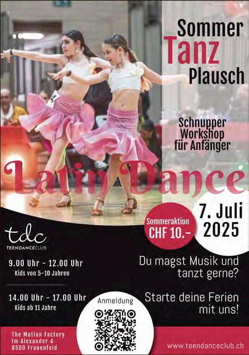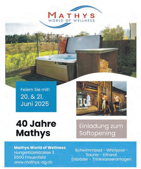 7-7.30 Uhr: Early Bird Morgenmusik, Rest. La Terrasse, Grabenstr. 8 11-16 Uhr: Werkschau der Bildschule Frauenfeld, Bahnhofplatz 79 12 Uhr: Quartiertreffpunkt: Mittagstisch, Oberwiesenstrasse 13 12.15 Uhr: Yoga, Bewegungsraum Stadtkaserne 17-22.30 Uhr: Grabenfest 2025, Grabenstrasse 17.30 Uhr: 40 Jahre Mathys, Hungerbüelstrasse 3 18 Uhr: Abschlussfeier FMS, IMS und Preisverleihung, Kantonsschule 18 Uhr: Die etwas andere Stadtführung, Altstadt 19 Uhr: Spielabend der Ludothek, Bistro, Zur alten Kaplanei 19.30-21.30 Uhr: Vortrag: Neutralität der Schweiz, Bahnhofplatz 65/67 20 Uhr: Theater für alle: Ich packe meinen Rucksack, Industriestr. 23 20 Uhr: Exkursion Naturschutzgebiet Allmend, Grosse Allmend