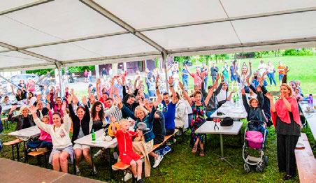 «Ich fühle mich sehr berührt von den Produktionen und dem, was hier alles zu mir und über mich gesagt wurde. Das ist eine mega Wertschätzung meines Wirkens hier in Frauenfeld. Ich habe so viel Dank verspürt, dass ich mein Berufsleben von daher auch ganz gut hinter mir lassen kann.» Dies die Worte eines sichtlich bewegten Andreas Bänzigers gegenüber dieser Zeitung, der im Kreise seiner Familie die Ehrungen im Festzelt nicht nur passiv entgegennahm, sondern mit auf der Bühne beherzt in die Tasten des E-Pianos griff und auch Proben nicht nur seines sprachlichen Könnens aufblitzen liess. Ob er danach mit der Frau auf dem Hintersitz auf der Harley nach Hause brause? Bänziger lacht und zeigt Richtung Kirche, wo die Maschine brav parkiert der Dinge harrte, die da kommen sollten. Mit dem Doppelritt werde heute aber nichts, da seine Frau des unsicheren Wetters wegen vorsichtshalber mit dem Auto gekommen sei. Aber das wird sicher nachgeholt werden, wenn die beiden eines der vielen Geschenke einlösen werden: ein Weekend bei den Giessbachfällen. Doch was wäre ein Gemeindefest ohne all die helfenden Hände, die zum Gelingen beigetragen haben? Heinz Stübi, Präsident der Kirchenvorsteherschaft, bat denn auch diese ansehnliche Truppe am Schluss des Nachmittags auf die Bühne. Er würdigte nebst den vielen Produktionen zu