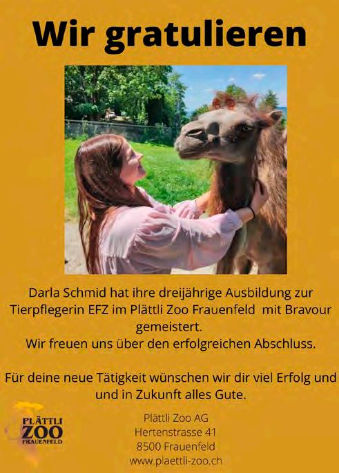 26. Juli 2023 | Ausgabewoche 30 | 37. Jahrgang | Auflage 38 131| info@frauenfelderwoche.ch| www.frauenfelderwoche.ch | Telefon 052 720 88 80 | Annahmeschluss: Dienstag , 12.00 Uhr Langweilig wirds bestimmt nicht Ein Sommer voller