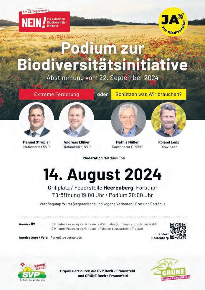 Donnerstag, 22. August 2024 ab 18 Uhr zur Alten Kaplanei, Zürcherstrasse 175, 8500 Frauenfeld