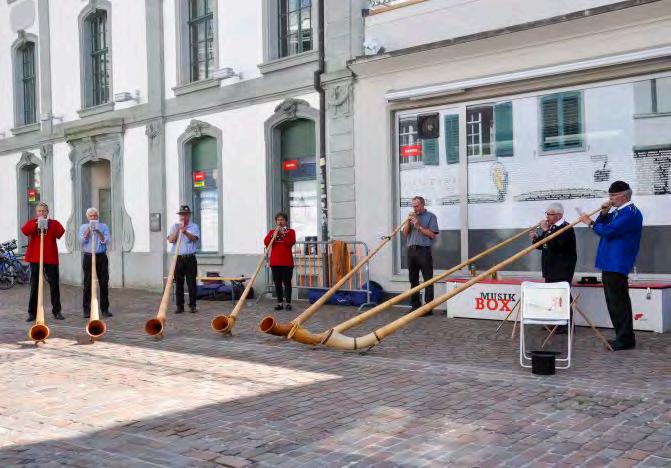 Oftmals am Samstag werden die Passanten vor dem Redinghaus in Frauenfeld mit Musik unterhalten. Diesmal war die Alphorn-Gruppe Frauenfeld (Bild) für die ganz besonderen Töne verantwortlich. Sie spielten traditionelle Melodien, aber auch