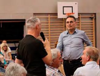 Architekt Ivano Sorgon beantwortet eine Frage aus dem Publikum. zept des Badigebäudes eingeladen. Die Jury wird anschliessend Vorschläge auswählen. Vom 24. Oktober bis 15. November werden diese zur Stimmabgabe auf der Gemeindeverwaltung aufgelegt. Das «Gewinner-Farbkonzept» wird an der Budgetgemeindeversammlung vom 28. November bekanntgegeben. Nebst dem Budget 2025 befinden die Pfyner Stimmberechtigten ebenfalls über den Kreditantrag des Badigebäudes.