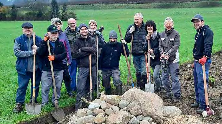 mindestens drei Metern Breite geben; der Landwirt wird hierfür noch extra eine Einsaat machen. Von Wildstauden profitieren viele Insekten; insbesondere die Bienen finden bei den Blüten Nahrung. Ausserdem wird sich auch das menschliche Auge an den Farben erfreuen. Farben bieten auch die Sträucher mit ihren Blüten und Beeren. Folgendes Sortiment wurde gepflanzt: Heckenrose, Felsenbirne, Pfaffenhut, Schwarzdorn, Kreuzdorn, Kornelkirsche, Schwarzer Holunder und andere mehr. Vögel lieben Dornengestrüpp, da sie dort vor Feinden sicher sind. Eine Besonderheit ist der Neuntöter, der an Stacheln seine Beute aufspiesst. Da er selten geworden ist, gibt es vom Thurgauer Vogelschutz das «Neuntöter-Projekt». Singvögel ernähren sich gerne von den Beeren der Sträucher, von den Insekten, die sich im Krautsaum gut vermehren werden, und von den Samen des Krautsaums selber. So hofft der NVM, dass die kleinen gefiederten Freunde bald die Hecke besiedeln können. Anfangs werden noch einige Vogelstangen den Raubvögeln einen Aussichtspunkt bieten – dies ist lediglich zur Regulierung der Mäuse, welche sonst die Wurzeln der jungen Pflanzen fressen würden. Später werden die Vogelstangen entfernt, denn Raubvögel fressen bekanntlich auch Singvögel, und diese möchten ja gefördert werden. Die neue Hecke erfüllt die Qualitätsstufe zwei mit einem 20-prozentigen Dornenanteil. Sie verläuft Nord-Süd auf dem Gebiet «Hägglibach» in Siedlungsnähe. In einigem Abstand befindet sich auch noch eine Buntbrache. Solche kleinräumigen Strukturen helfen den wilden Lebewesen. Die Ebene gehört auch zum kantonalen Feldlerchengebiet – bestimmt nützt der bedrohten und schön singenden Lerche die neu geschaffene Hecke, indem sie Schutz bietet und das Nahrungsangebot erweitert, sodass sie hier wieder Fuss fassen kann. (zvg)