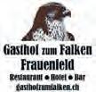 Impressum Frauenfelder Woche Zürcherstrasse 180 l 8501 Frauenfeld Tel. 052 720 88 80 l Fax 052 720 88 84 info@frauenfelderwoche.ch www.frauenfelderwoche.ch Mitglied im Verband Schweizer Regionalmedien www.vsrm.ch Beratung I Inserateverkauf: Sabrina Mancuso Robert Schmitt Lucien Fisler Annahmeschluss: Eingesandte: Montag 12 Uhr Bezahlte Beiträge: Dienstag 12 Uhr Administration: Monika Rietmann Redaktion: Michael Anderegg (mra) Andreas Anderegg (aa) Sportredaktion: Ruedi Stettler (rs) Redaktionelle Mitarbeiter: Eugen Benz (eb) Evi Biedermann (bie) l Beni Blaser (bb) l Urs Nobel (uno) l Manuela Olgiati (mo) l Andreas Schneller (as) l Miriam Waldvogel (mw) Verlag: Nela & Samuel Zurbuchen (nz) l (sz) Satz: Genius Media AG l Zürcherstrasse 180 8501 Frauenfeld Druck: DZZ Druckzentrum Zürich AG Zustellung: Presto Presse Vertriebs AG www.frauenfelderwoche.ch Die E-Paper-Ausgabe ist jeweils ab Mittwochmorgen online 8355 Aadorf 8500 Frauenfeld 8552 FelbenWellhausen 8584 MüllheimWigoltingen 9508 WeingartenKalthäusern 8522 Häuslenen 9548 Matzingen 9507 Stettfurt 8512 Thundorf 8505 Pfyn 8555 Müllheim-Dorf 8556 Wigoltingen 8564 Wagerswil 8560 Märstetten 8553 HüttlingenMettendorf 8508 Homburg 8507 Hörhausen 8506 Lanzenneunforn 8535 Herdern 8536 Hüttwilen 8524 Üesslingen 8537 Nussbaumen 8526 Oberneunforn 8525 Niederneunforn 8548 Ellikon an der Thur 8545 Rickenbach b.ei Winterthur 9547 Wittenwil 9545 Wängi 9546 Tuttwil 8357 Guntershausen bei Aadorf 8356 Ettenhausen 8523 Hagenbuch ZH 8547 Gachnang 8546 Islikon 8544 Attikon 8543 Bertschikon 8532 Warth-Weiningen 9506 Lommis 8476 Unterstammheim 8468 Guntalingen Waltalingen 8477 Oberstammheim Auflage: 37 561 Alle Kurse und Kategorien dein Suchen hat ein Ende Fahrschule Mangold Tel: 079 420 75 87 Kursdaten: fahrschule-mangold.ch ANKAUF GOLD, SILBER, UHREN Goldschmuck, Münzen, Barren, Zinn, Zahngold, Altgold, Silberbesteck, Markenuhren, defekte Uhren und Uhrenteile SERVICE Batteriewechsel, Revisionen, Reparaturen und Service für sämtliche Armbanduhren, Taschenuhren, Regulatoren, Pendeluhren, Atmos Zürcherstrasse 169, 8500 Frauenfeld 052 721 25 61 saphir.frauenfeld@gmail.com