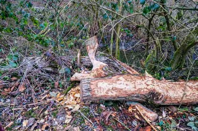 Deutlich zu sehen sind die Spuren des Bibers im Naturschutzgebiet Ochsenfurt. B ild: Elke Reinauer