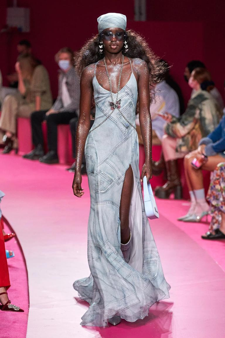 Blumarine's SS 2022 ready to wear collection "Beat", worn by Adit PriscillaMuch of the recycling of fashion trends are interpretations, not accurate portrayals. This raises the question of why trends are reproduced but not accurately replicated. The easy answer is to say that historic clothing is actually impractical and oftentimes ugly On a deeper level, we use fashion to romanticize the past, making things we imagine as being beautiful new again through contemporary designs.