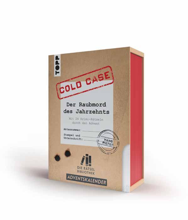 400-7742- TOPP-Nr. Titel €/Stk. Expl. 18482-7 18482 24 DAYS ESCAPE 3D-Adventskalender – Sherlock Holmes im Schatten des Big Ben 49,99 € 5 18292-2 18292 24 DAYS ESCAPE 3D-Adventskalender – Sherlock Holmes und die letzte Fahrt der Titanic 49,99 € 3 18192-5 18192 24 Days Escape: 3D-Adventskalender – Sherlock Holmes und das Anwesen Moriarty 49,99 € 2 18469-8 18469 Escape Experience Adventskalender – Atlantis. Löse die 24 Rätsel der sagenumwobenen Stadt 32,99 € 4 18269-4 18269 Escape Experience Adventskalender – Die einsame Berghütte 31,99 € 2 18315-8 18315 Escape Adventures Adventskalender – Die verwunschenen Eisruinen 31,99 € 2 18083-6 18083 Escape Adventures Adventskalender – Der mystische Express 31,99 € 1 18056-0 18056 Escape Adventures Adventskalender – Die geheimnisvolle Burg 29,99 € 1 18464-3 18464 Crime Files – Fallakte: Selbstfindung mit Todesfolge: Der Krimi-Adventskalender mit Tatorten rund um die Welt 29,99 € 3 18264-9 18264 Crime Files – Fallakte: Die Northpole-Gang. Der geniale Krimi-Adventskalender für alle Wohnzimmer-Ermittler 29,99 € 2 32258 Display: Krimi- & Escape-Adventskalender 11 Artikel: 25 Nonbooks, netto gesamt ca. 450 € Auslieferung: 11.09.
