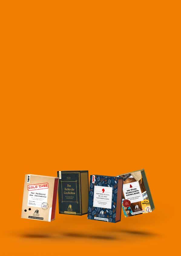 978-3-7358- TOPP-Nr. Titel €/Stk. Expl. 5148-2 25148 24 DAYS ESCAPE – Der Escape Room Adventskalender: Alice im Wunderland und das Geheimnis der Grinsekatze 15,99 € 2 5149-9 25149 24 DAYS ESCAPE – Der Escape Room Adventskalender: Sherlock Holmes und das schottische Seeungeheuer 15,99 € 2 5159-8 25159 Micro Crimes Adventskalender – Sherlock Holmes und die Blutspuren im Schnee. Mit XXL-Wimmelposter und Stickern durch London 20,00 € 2 5171-0 25171 Lost Places Escape-Adventskalender – Lüfte das Geheimnis der verlassenen Orte: 24 versteckte Rätsel entschlüsseln 20,00 € 1 8059-8 28059 Colorful Christmas - Die Ausmal-Weihnachtskrippe (Adventskalender) 14,99 € 2 8058-1 28058 Colorful Secrets - Wunderschöne Weihnachten (Ausmalen auf Zauberpapier) 14,99 € 2 8085-7 28085 Creative Manga Christmas. Der Mitmach-Adventskalender 15,00 € 2 8060-4 28060 Zauberhaft Zeichnen. Der inoffizielle Harry Potter Adventskalender 24,99 € 2 5173-4 25173 Unser kunterbunter Familien-Adventskalender. Der erste Adventskalender für die ganze Familie. 25,00 € 2 5164-2 25164 Zauberhaft basteln. Der inoffizielle Harry Potter Adventskalender 16,00 € 2 5166-6 25166 Christmas magic. Origami Adventskalender 15,00 € 1 7049-0 27049 Gemeinsame Strickzeit. Der Adventskalender 22,00 € 2 7072-8 27072 Oh du sockige Weihnachtszeit 24,00 € 2 7048-3 27048 Christmas Cuteness. Baumschmuck häkeln - Adventskalender 18,00 € 1 5204-5 25204 Zeit statt Zeug: Der achtsame Adventskalender 28,00 € 1 5199-4 25199 Adventsmomente mit @liebartig 25,00 € 1 978-3-77248099-7 8099 24 DAYS ESCAPE – Der Escape Room Adventskalender: Daniel Defoes Robinson Crusoe und die verlassene Insel 15,99 € 1 32191 Aktion: Kreative Buch-Adventskalender 17 Titel: 28 Bücher, netto gesamt ca. 279 € Auslieferung: 11.09.