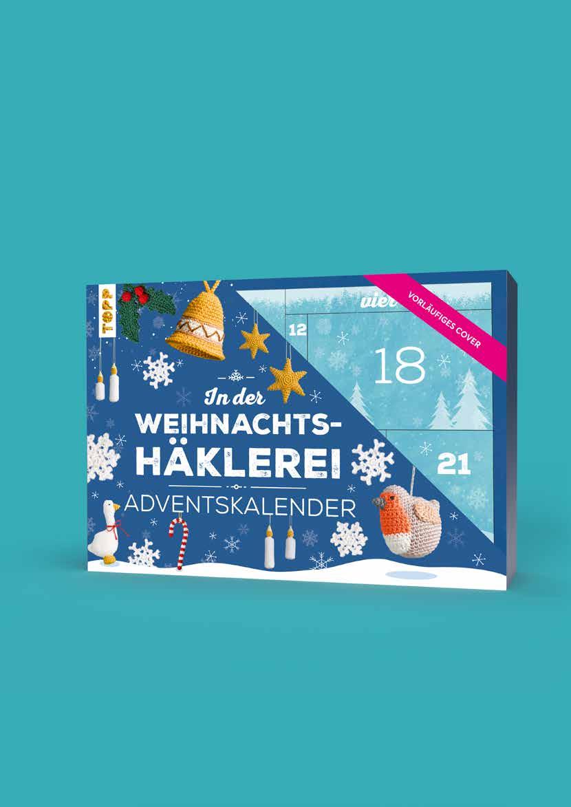 18636-4 18636 In der Weihnachtshäklerei – Der Adventskalender mit Material und Anleitungsbuch für 24 Häkelprojekte