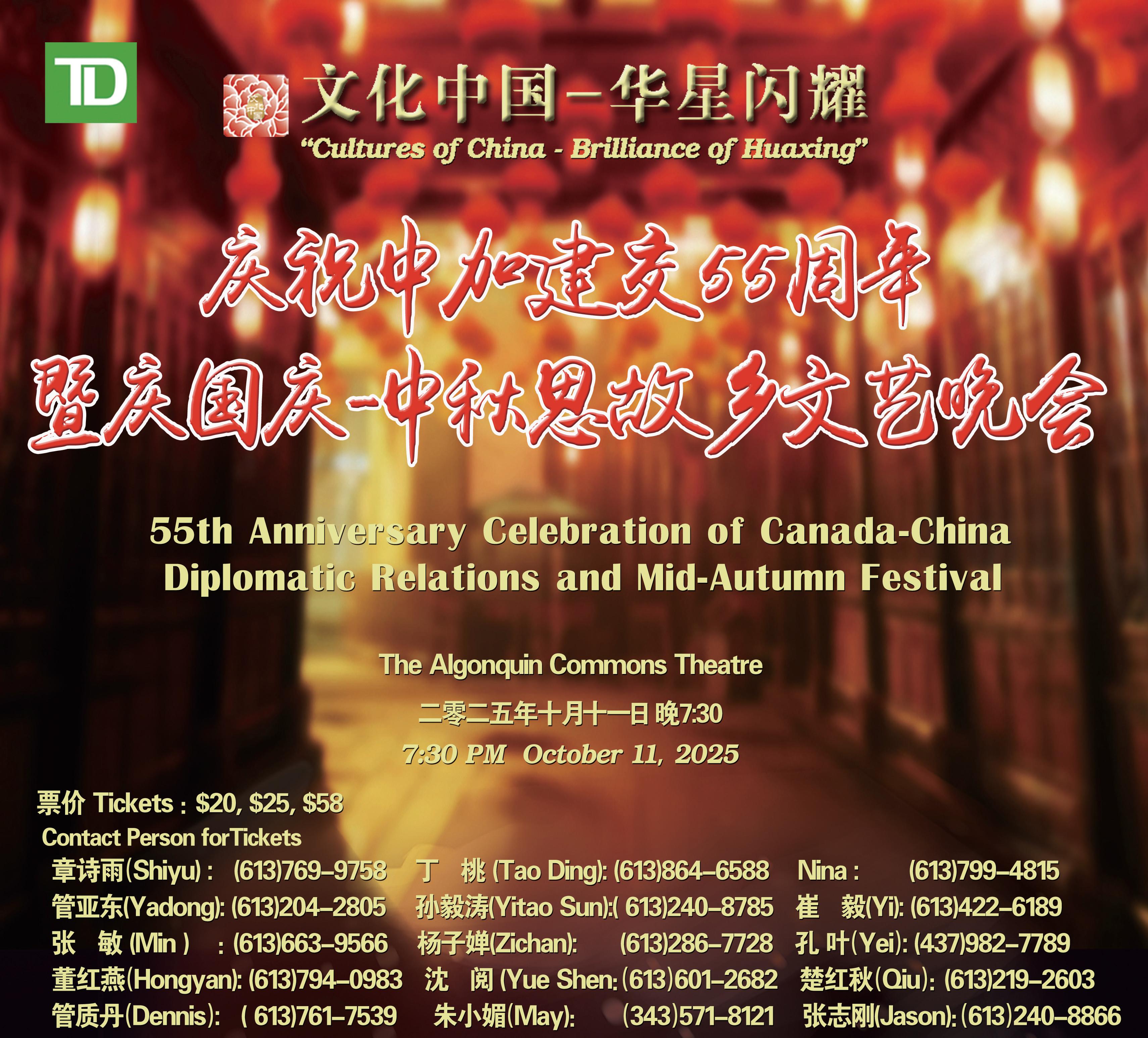 预祝“文化中国-华星闪耀”-庆祝中加建交55周年 暨庆国庆-中秋思故乡文艺晚会
