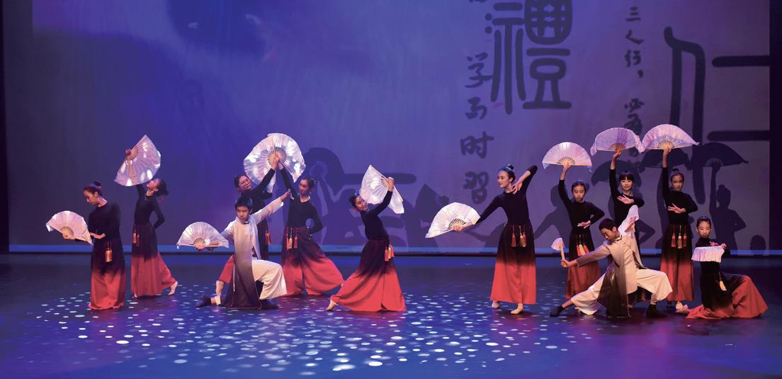 演出团体:子文舞蹈学校 子文舞蹈学校的少年舞者以飘逸的舞姿演绎“登高望远”的诗意意 境。折扇翻飞、衣袂生风,一招一式皆透出东方古韵的柔与刚。舞 台灯光映照下,舞者仿若自千年书卷中走出,赢得满堂掌声。 双琵琶重奏:《小月儿高》
