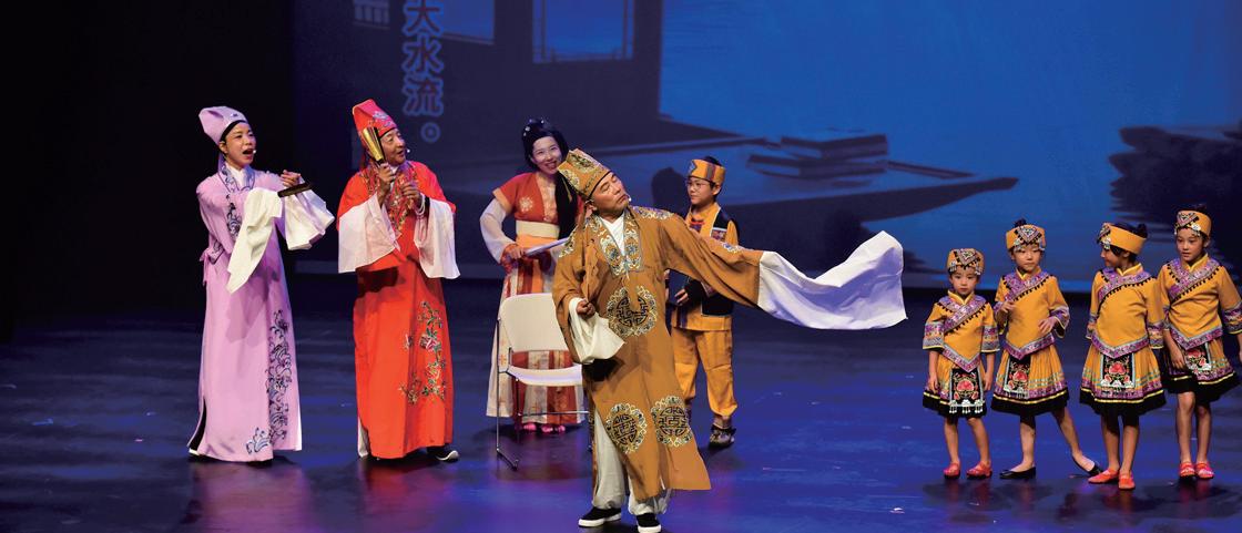 演出团体:渥太华戏曲乐园 / 欣华中文学校 渥太华戏曲乐园与欣华中文学校的小演员们带来脍炙人口的彩调剧 片段。稚嫩的童声唱腔清亮,机智的对白引来阵阵笑声。舞台上“小 刘三姐”们从容自信、妙语连珠,在传承中焕发青春光彩,尽显海 外华人新生代的文化自信。