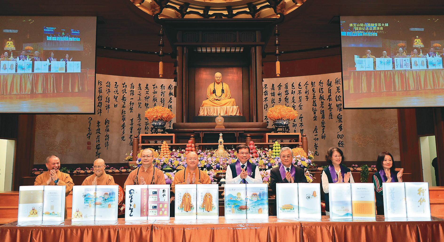 ⇧ 佛光山3月3日舉行「佛光山開山祖師星雲大師圓寂紀念日讚頌會」,中華郵政同步發行「傳燈六十 百年仰望」 紀念郵票致敬大師。 圖/人間社記者莊佳穎