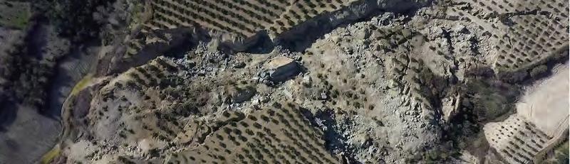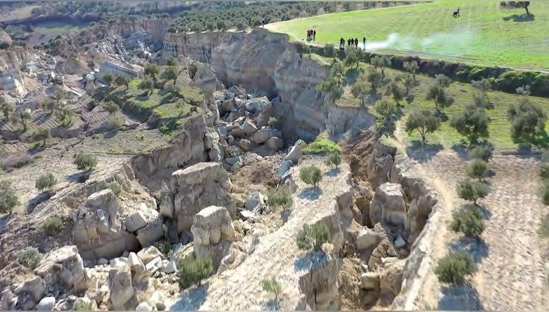 土耳其6日發生規模7.8的毀滅性強震,東南 部一處青翠的橄欖園因此被一分為二。當地更出 現了一個長度超過300公尺的裂谷,將當地分隔 開來。