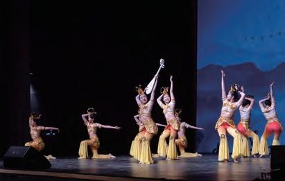 敦煌印象 敦煌舞作为中国古典舞中重要的舞种之一, 堪称“行走的敦煌壁画”。梦幻与现实交织,温 柔与刚毅并存,曼妙的舞姿,清而不高,艳而不俗, 尽显飞天神韵。敦煌舞中的文化精神和美学特征, 在海燕舞蹈学校演员们的一颦一笑中得到完美体 现。