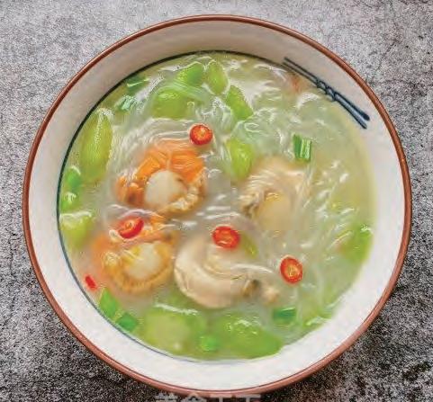 9扇贝肉倒入。 10煮一分多钟。 11适量盐,麻椒油,白 胡椒粉调味儿。