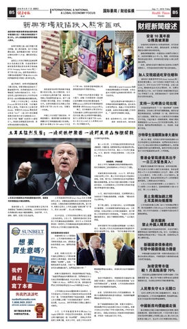 土耳其猛烈反击:一边同俄伊抱团 一边对美商品加征关税 合美国利益的措施。 进入 8 月以来,土耳其里拉因特朗普政府先后 2 轮制裁,大幅贬值,恐慌情绪蔓延至整个新兴市场。 在土耳其央行出手救市后,里拉 14 日兑美元涨逾 8%。15 日,截至第一财经记者发稿时,1 美元兑换 6.36 里拉。 与俄罗斯、伊朗抱团 就在土耳其方面酝酿反制裁美国措施的同时, 同受美国制裁之苦的俄罗斯向土耳其送去了安慰。 根据克里姆林宫的消息,13~14 日,俄外长拉 夫罗夫访问土耳其,与土耳其外长恰武什奥卢举行 会晤。其间,双方为 9 月即将举行的叙利亚问题有 关的会议做准备。此外拉夫罗夫还计划与土方就建 设核电站、以及俄罗斯向土耳其供应天然气的管道 项目等双边事务进行沟通。 14 日,两位外长结束会谈后,在新闻发布会上 土耳其在和俄罗斯及伊朗抱团取暖的同时,强硬宣