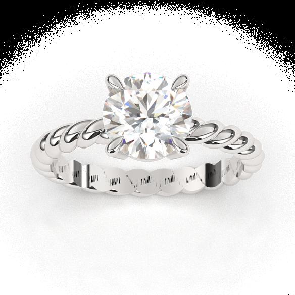 "Create an engagement ring based on this unity cable design with a smooth interior, and a 4 prong head to accommodate a 2 ct round diamond."