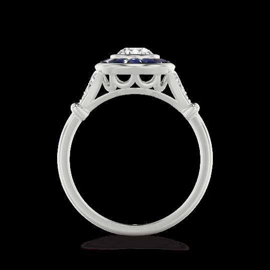 “Replicate this heirloom ring to fit a vintage 1 ct euro cut, round diamond with blue sapphire halo setting."