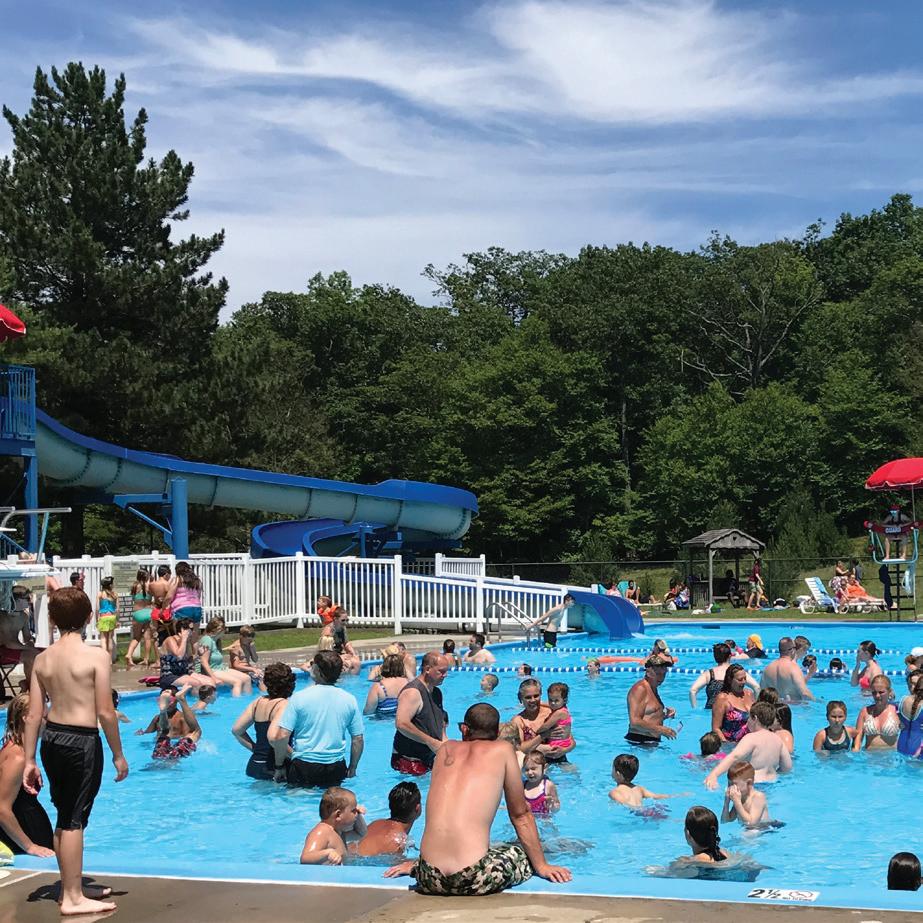 Swimming: The Dans Mountain swimming pool is heated and features a water slide! The pool is staffed by certified lifeguards and is fully accessible for persons with disabilities. Refreshments are available for sale at the entrance to the pool building, which was renovated in 2023. Hours are 11 a.m. - 6 p.m. Memorial Day weekend through Labor Day. Hours are subject to change due to weather, staffing availability or scheduled maintenance.