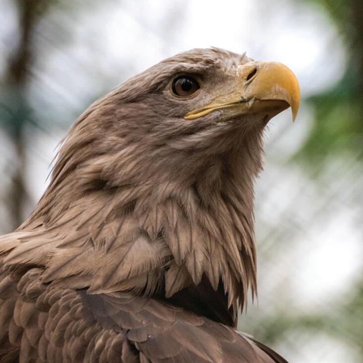 The Aviary houses non-releasable birds of prey. All of our birds have injuries that prevent them from living in the wild. Stop by and learn the stories of the golden eagle, bald eagle, turkey vulture, peregrine falcon, three species of owls and red-tailed hawk. Watch for our aviary encounters led by naturalists and the volunteers to get an up-close look at these amazing birds. Daily feed also can be observed in this outdoor facility.