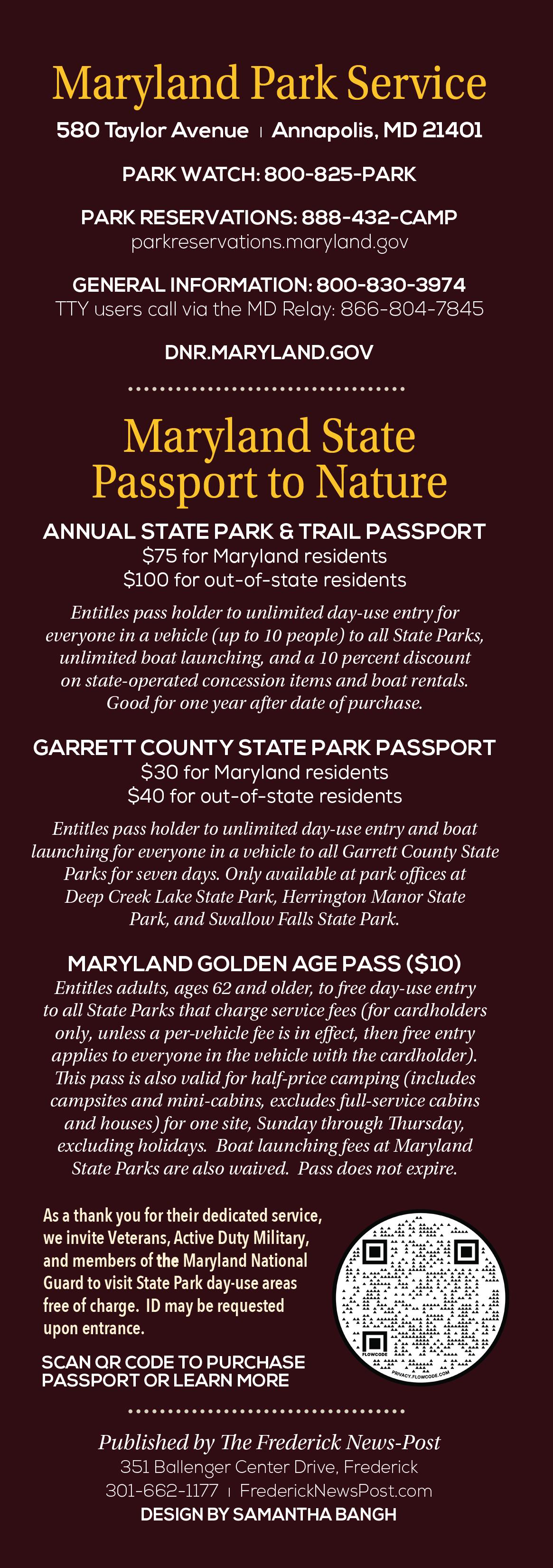 Events are subject to change. Call the park at 301-271-7574 for details, such as location and time, or go to the website, dnr.maryland.gov, and click on the calendar link for event details.