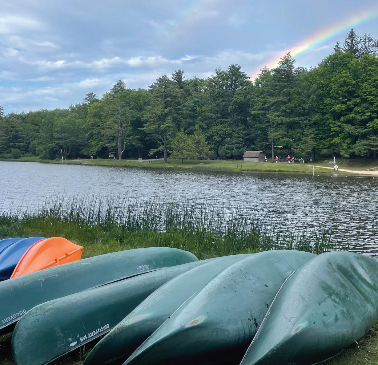 53 acres of great fishing, swimming, paddling, and bird watching, and is stocked with rainbow trout in the spring. Large mouth bass, blue gill, chain pickerel and even a few catfish reside in the lake year round. Canoe, kayak, and SUP rentals are provided at the Lake House, as well as some snacks for those who forgot to pack a picnic basket.