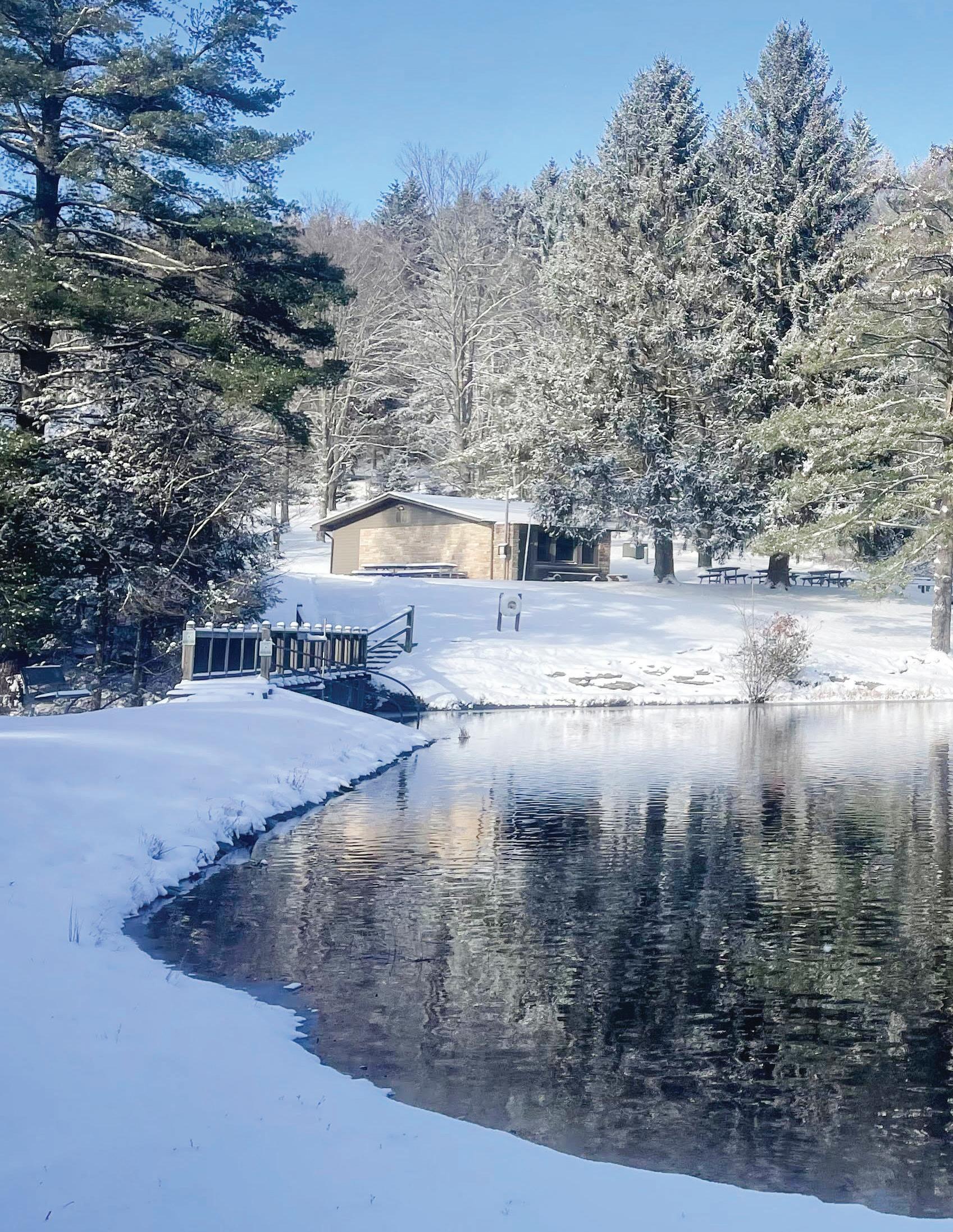 vegetation are protected under several inches of snow. Just be prepared: research your route ahead of time, have park maps and GPS available for reference, and let others know of your plan. Herrington Manor, New Germany and Deep Creek Lake State Park all have snowshoes available for visitors to rent.