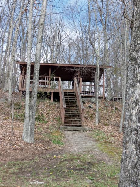 Group Camping: Dans Mountain features the Hill Run Group Campsite, which is reservable from May through September. This site offers a tent camping experience for up to 40 people, and includes a large pavilion with a fireplace and electric outlets. Showers and potable water are not available. A portable bathroom is provided.