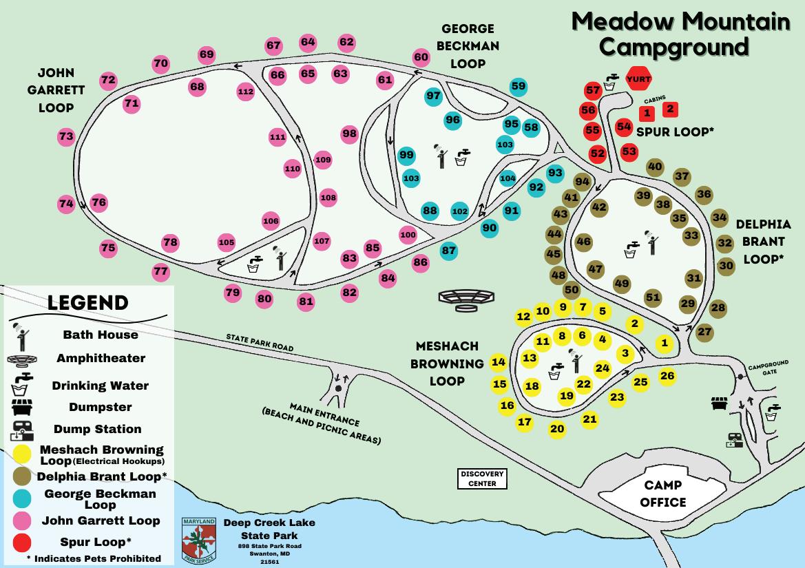 Cradled at the base of the picturesque Meadow Mountain, Deep Creek Lake sits more than 2,500 feet above sea level. The park boasts about a mile of shoreline along Maryland’s largest man-made lake. The Ranger Station is located at the intersection of Brant and State Park Roads.